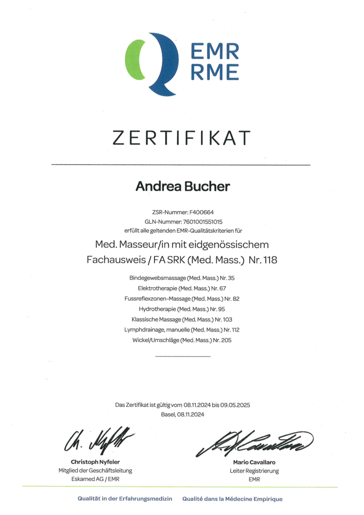 Meine Behandlungsmethoden sind grundsätzlich Krankenkassen anerkannt.